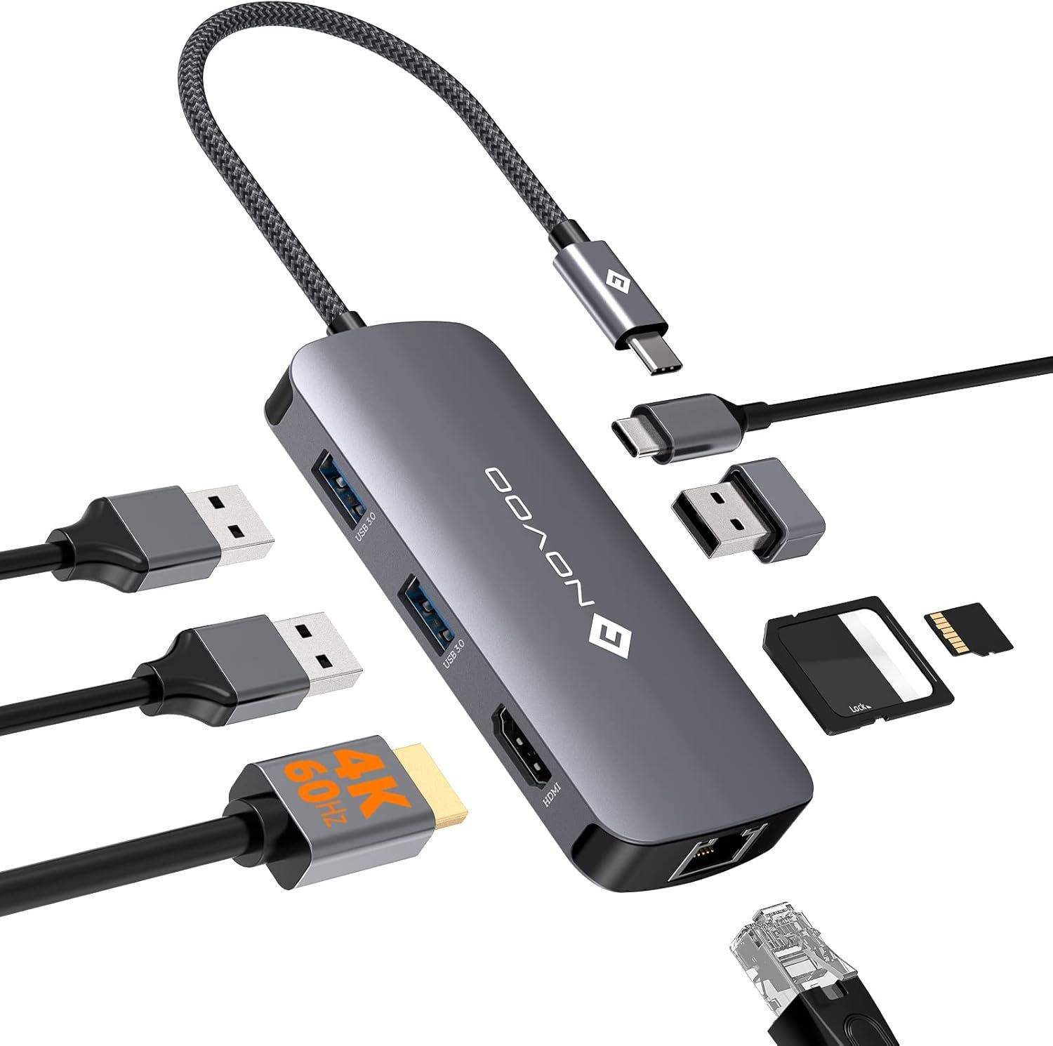 NOVOO Hub USB C 7 en 1 Adaptateur USB C vers HDMI 4K, Hub USBC avec Ethernet, 4 X USB, 100W PD Port de Recharge, Mulitport Dock USB C Adaptateur Compatible avec MacBook Pro MacBook Air