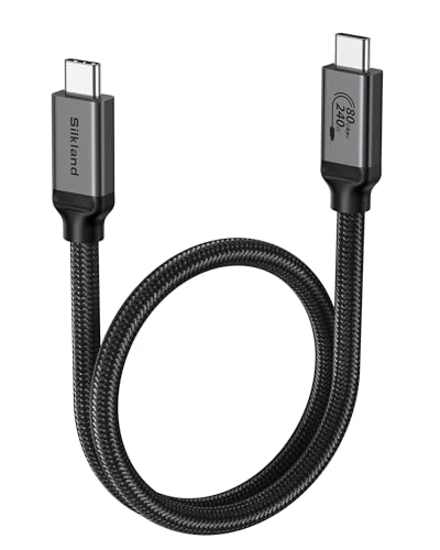 Silkland 80Gbps Câble USB C Transfert Données pour Thunderbolt 5 Court 30CM, jusqu'à 120Gbps de Bande Passante Vidéo, 16K/Dual 8K, Charge Rapide 240W, USB4 V2.0 pour Thunderbolt 4/3, SSD, Dock, Laptop