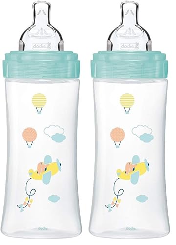Dodie Biberon Anti-Colique Sensation+ Vert Air, 330 ml, Tétine Plate, Débit 3 (Lot de 2)