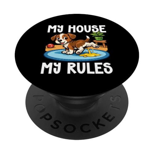 Funny Dog My House My Rules Pet Owner Dog Lover Blagues PopSockets PopGrip Adhésif