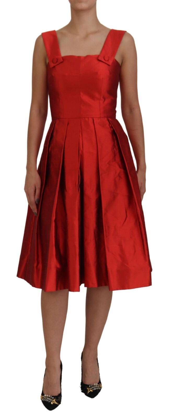 Robe DOLCE & GABBANA Satin Soie Rouge A-ligne Plissée Midi IT36/US2/XS 2330usd