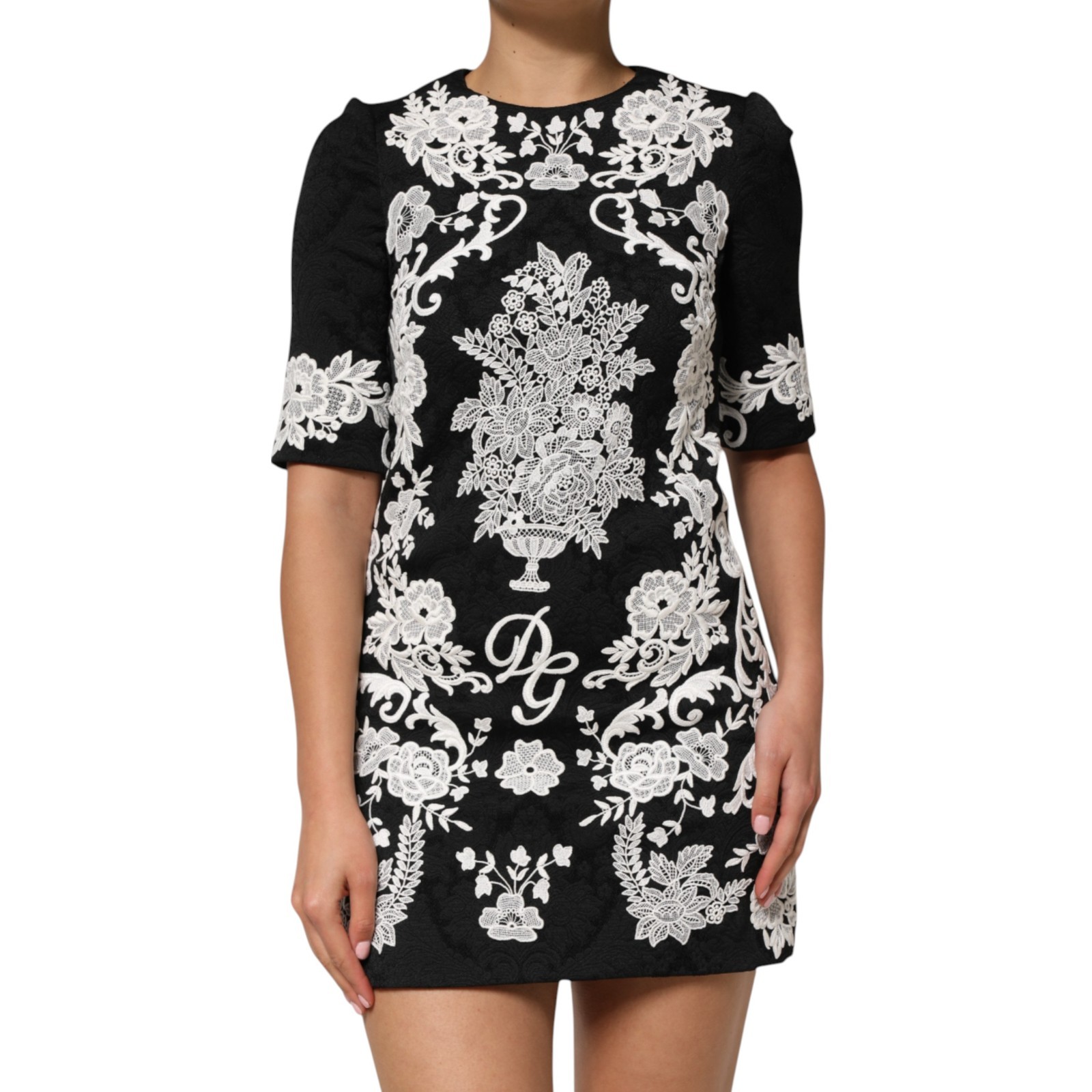 Dolce & Gabbana Robe Noir Dentelle Bordure Manches Courtes A-Line IT38/ US4/ XS