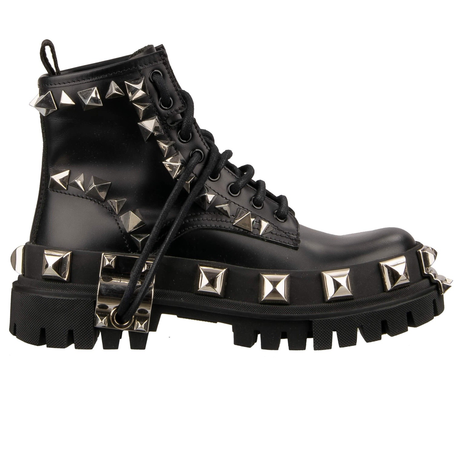DOLCE & GABBANA Bottes De Combat En Cuir À Clous Noires 37,5 US 7,5