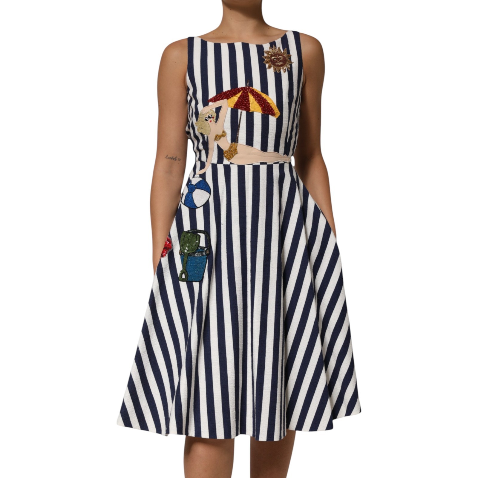Robe Dolce & Gabbana Rayée Bleue Et Blanche Brodée A-Line IT38/US4/XS 5930USD
