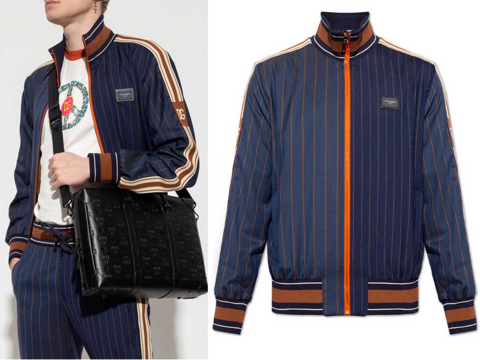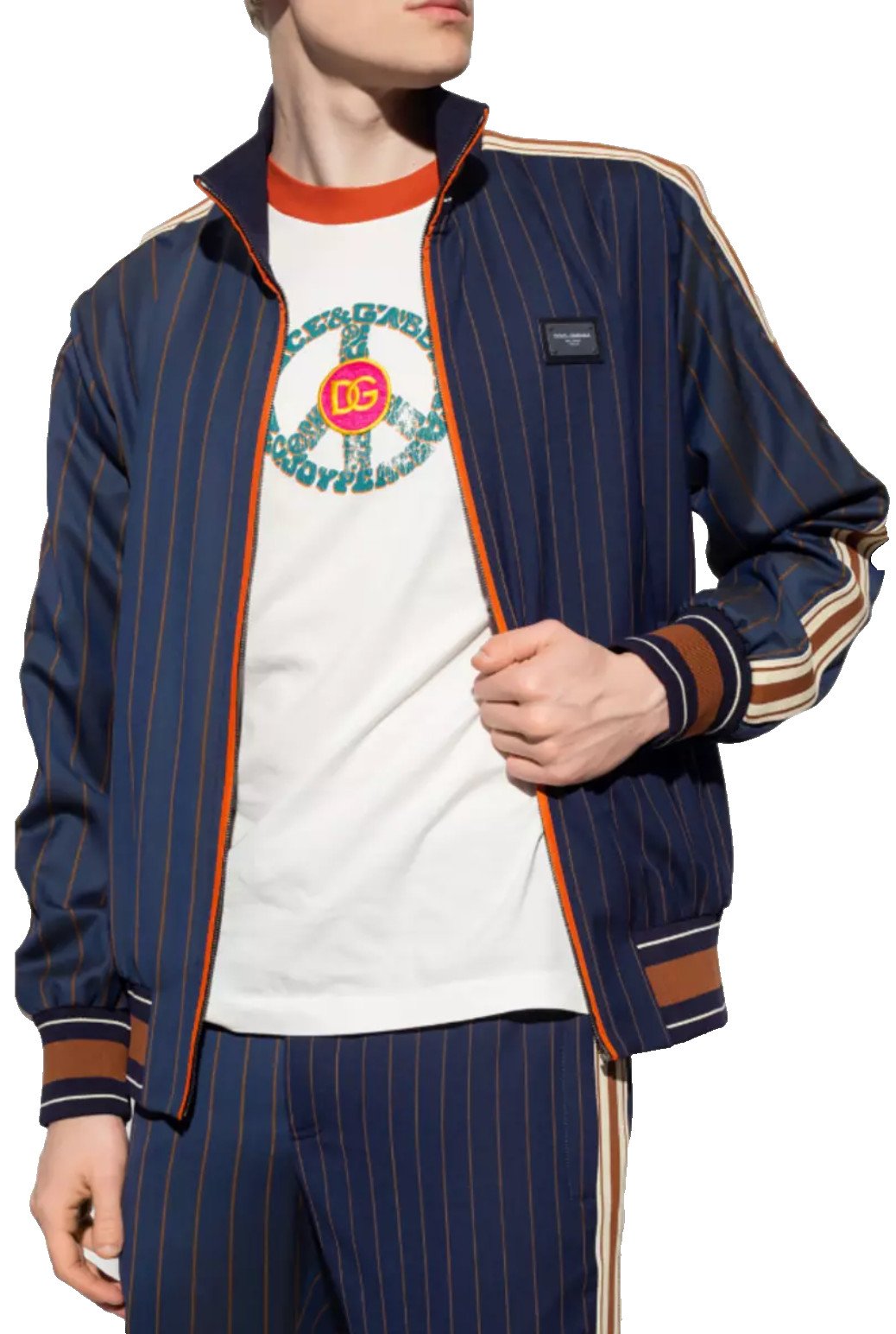 DOLCE & GABBANA Veste En Laine À Rayures Avec Logo Plaque Sport Blouson S