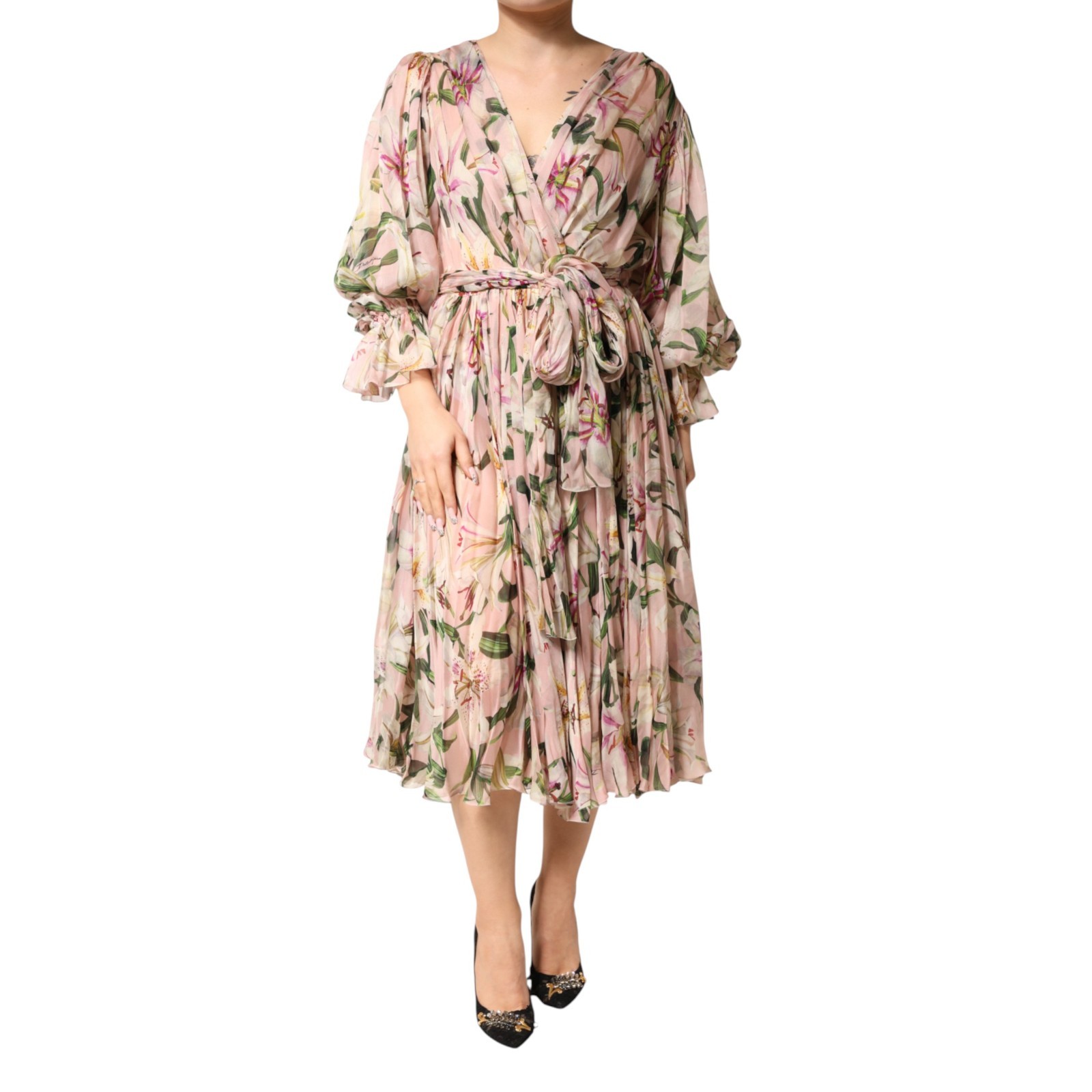 Robe DOLCE & GABBANA Imprimé Lys Rose A-ligne Plissée Maxi IT38/US4/XS 4130USD