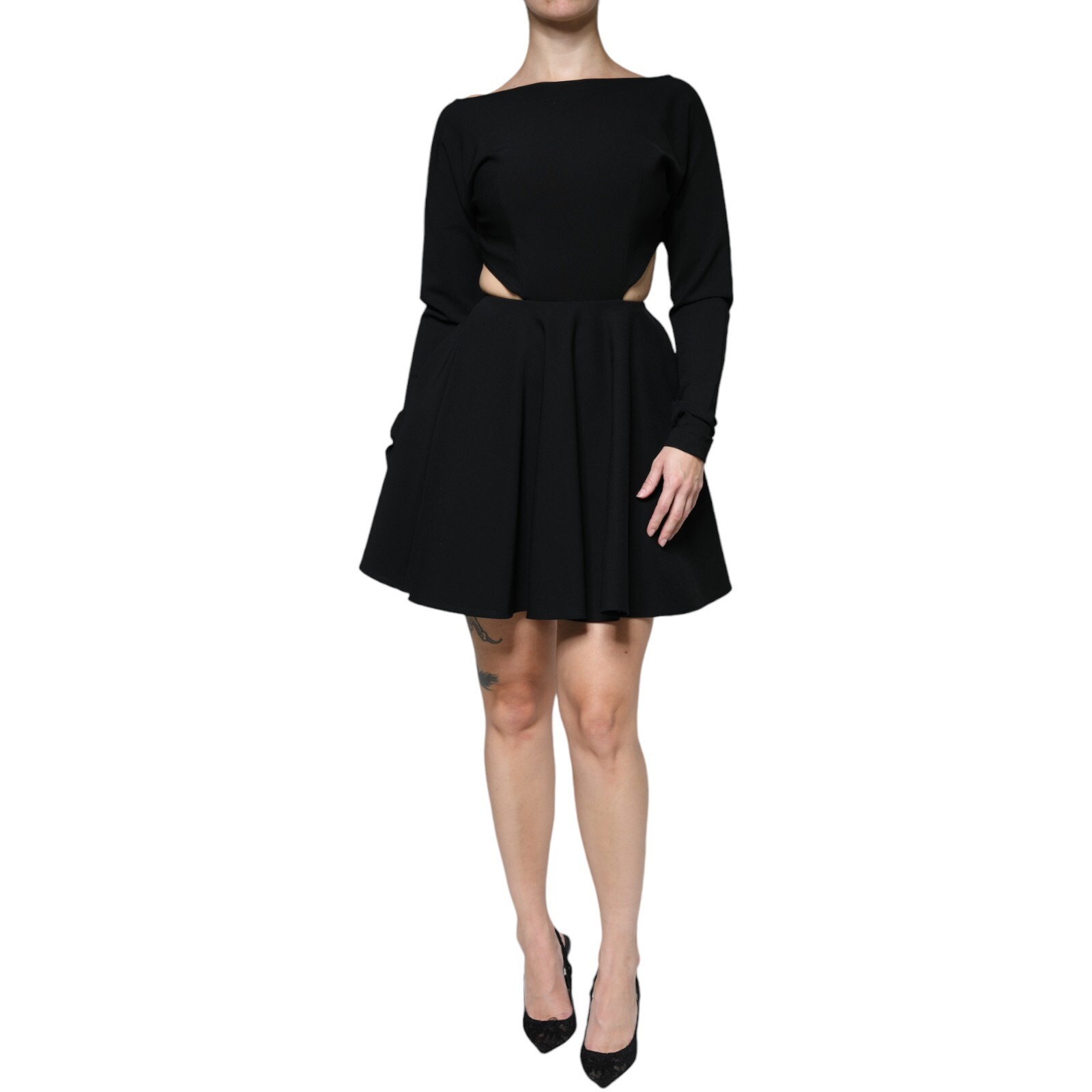 Dolce & Gabbana Robe Noir Viscose Découpe A-Line Manches Longues Mini IT40/US6