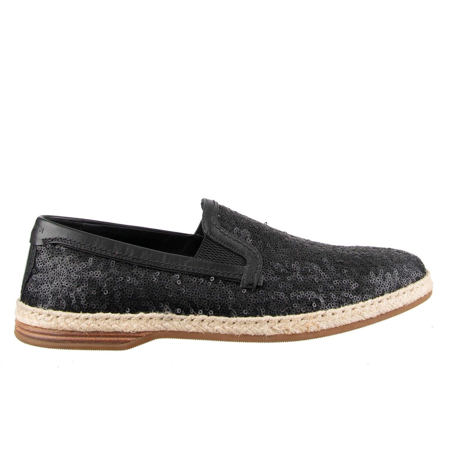DOLCE & GABBANA Mocassins À Paillettes MONDELLO Noir 42 UK 8 US 9 08632