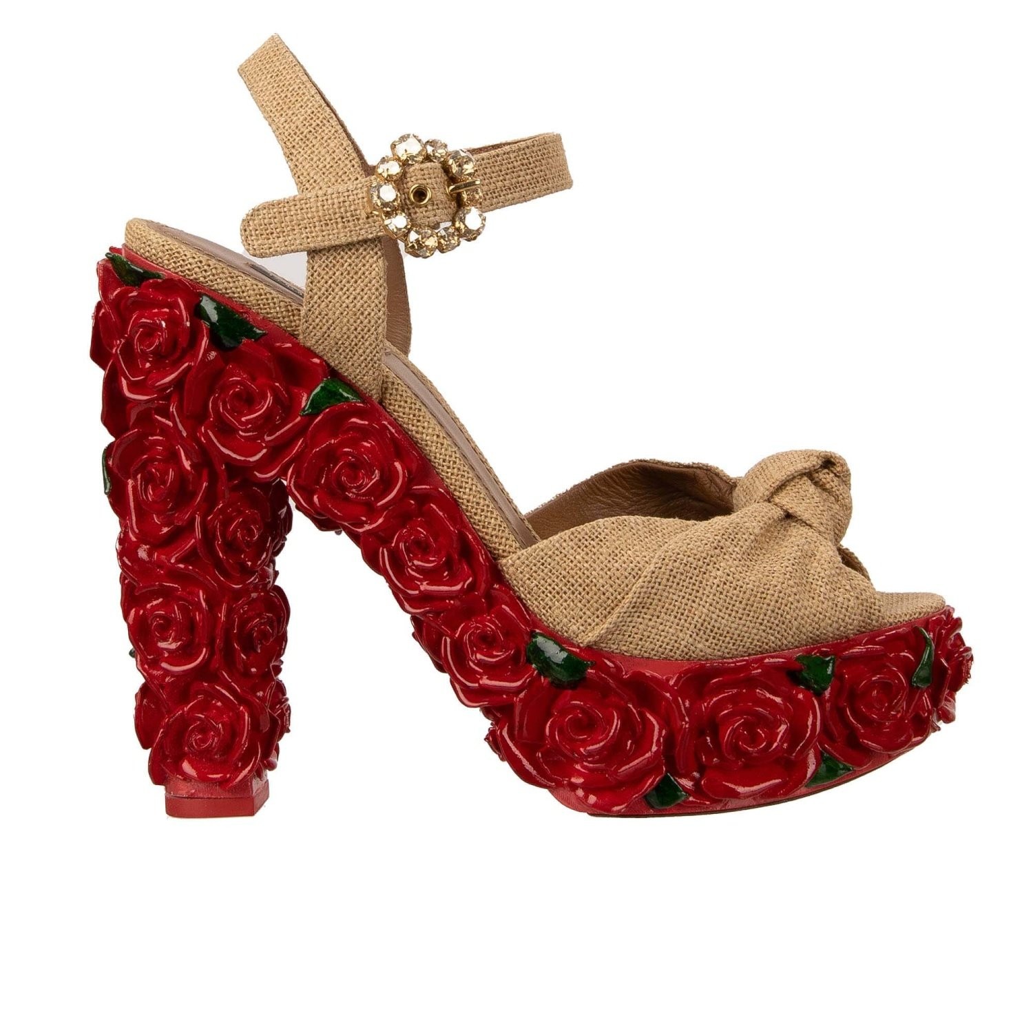 DOLCE & GABBANA Sandales À Plateforme Rose BIANCA Rouge Beige 35 US 5 UK 2