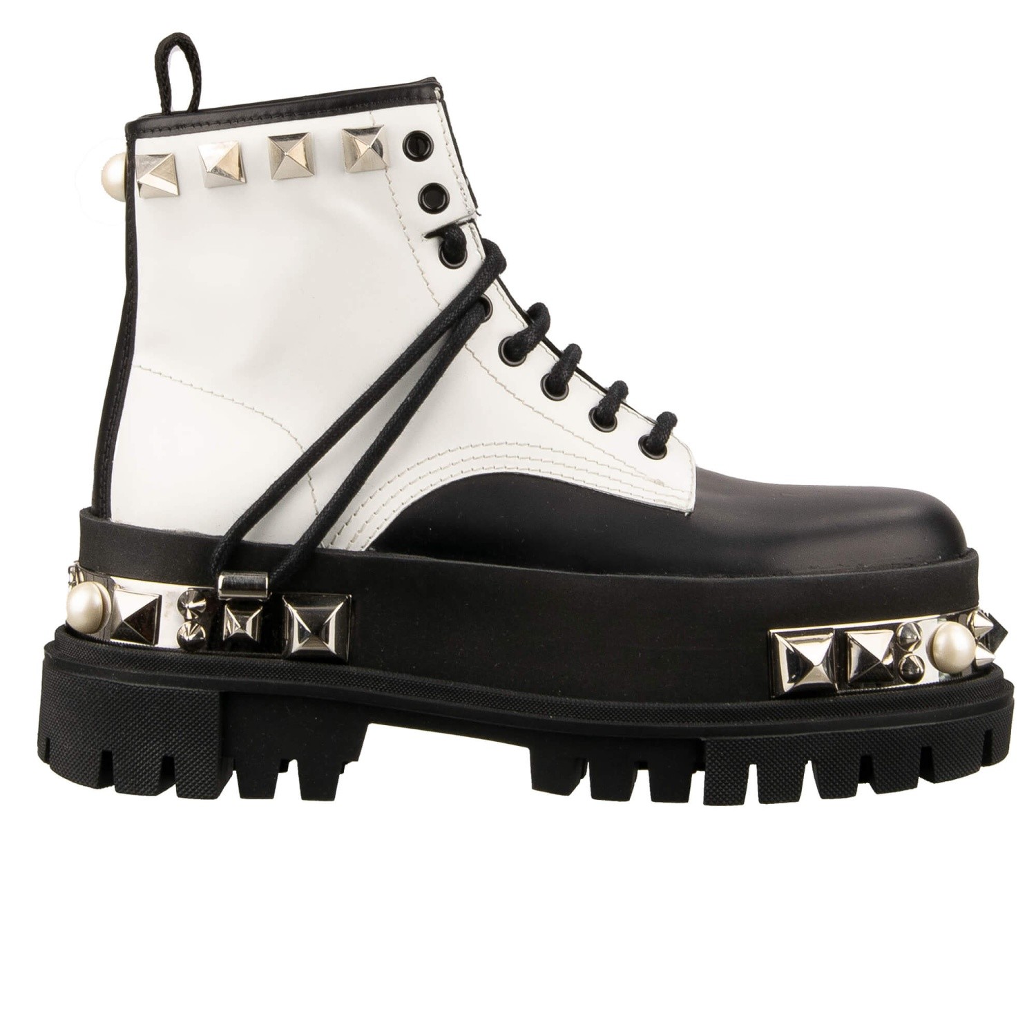 DOLCE & GABBANA Bottes De Combat En Cuir À Clous Noires Et Blanches 39 US 9
