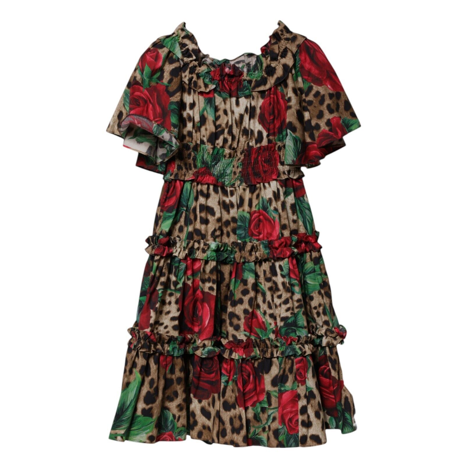Robe Enfant DOLCE & GABBANA Marron Léopard Rose A-ligne Taille 3 Ans RRP 600USD