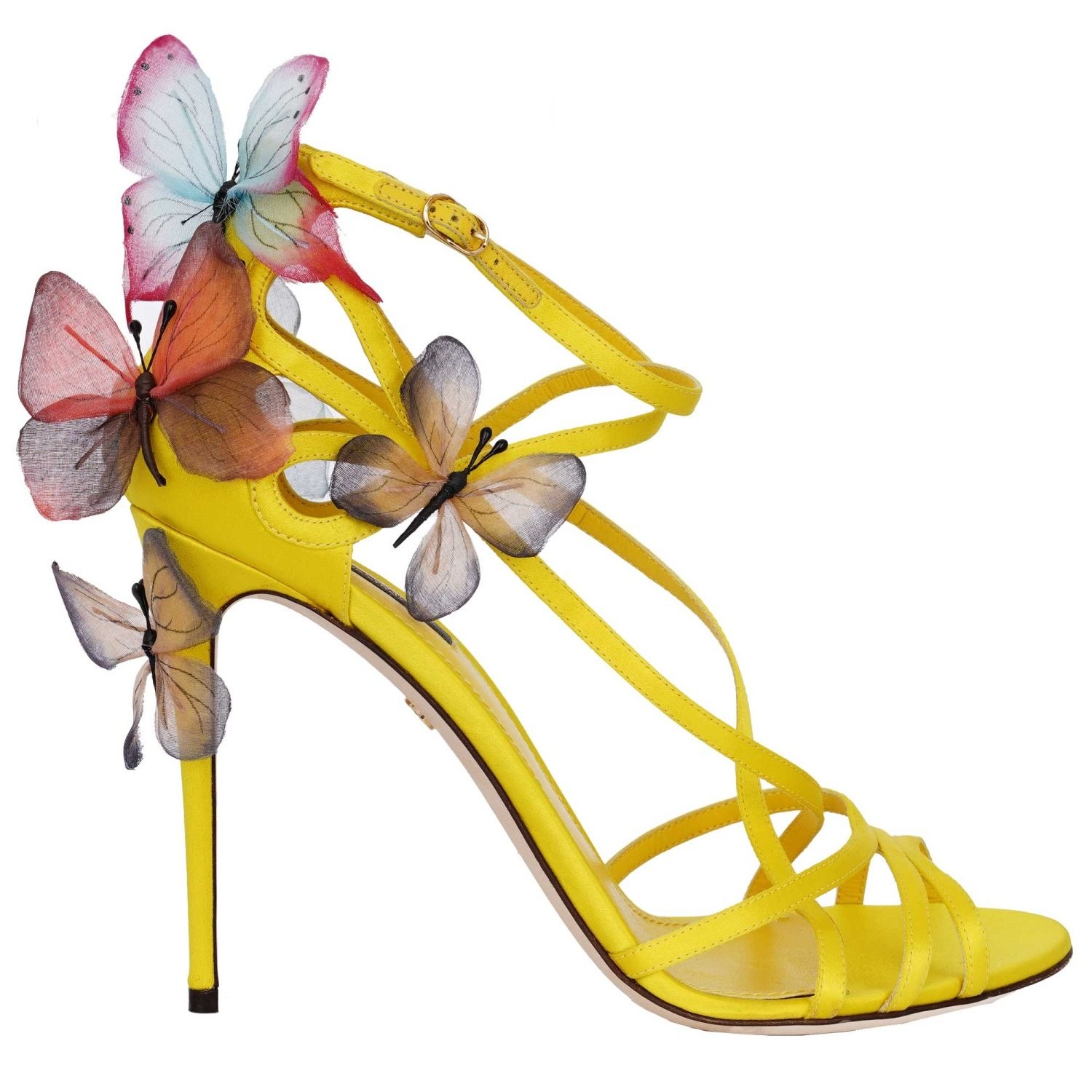 DOLCE & GABBANA Sandales À Talons Riemchen En Soie Papillon KEIRA Jaune 40 US 10