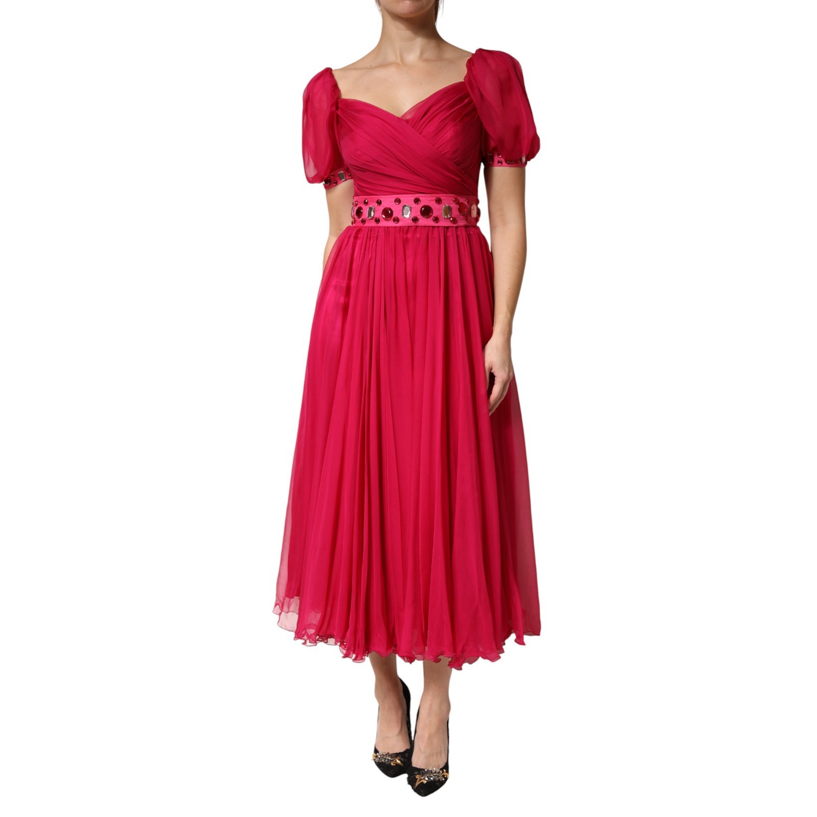 Dolce & Gabbana Robe Rose Mousseline Soie A-Line Plissé Midi IT42/ US8/M 4430usd