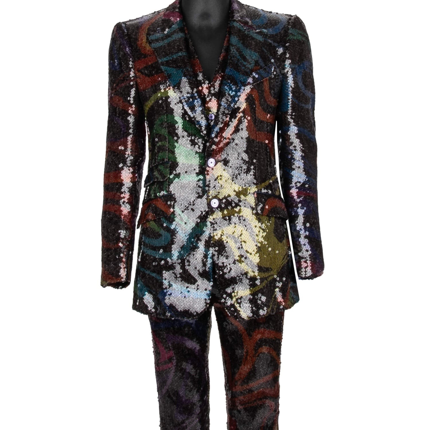 DOLCE & GABBANA Veste À Paillettes Costume Pantalon Bleu Rouge Noir 48 M