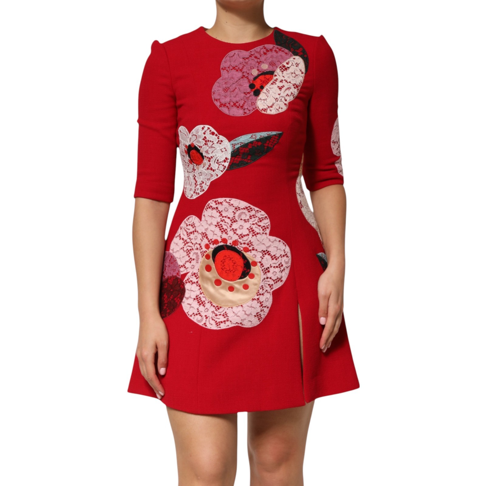 Dolce & Gabbana Robe Rouge Dentelle Appliques Florales A-Ligne Mini IT40/US6/S