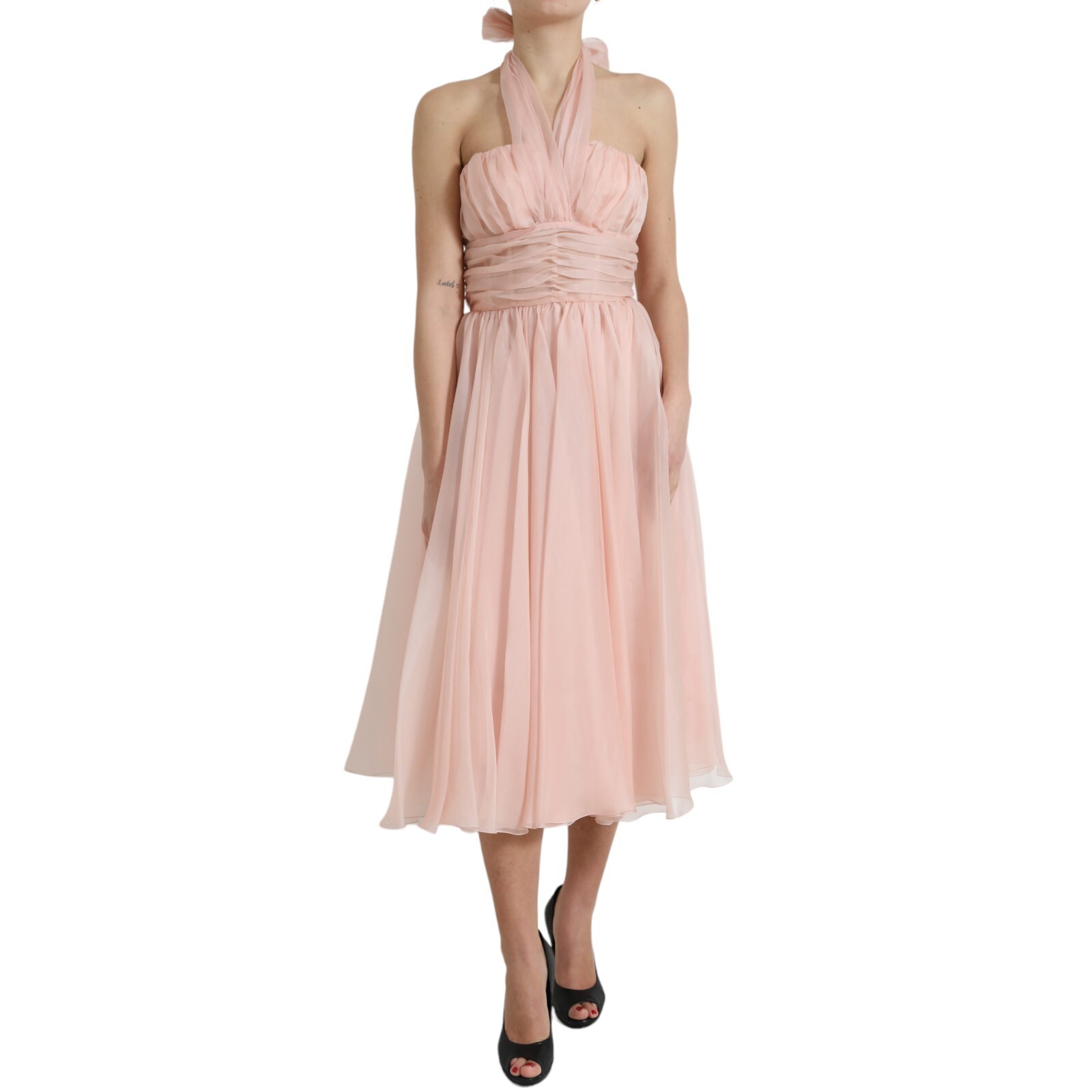Robe DOLCE & GABBANA En Soie Rose Chiffon Dos Nu A-ligne Plissée Midi IT40/US6/S