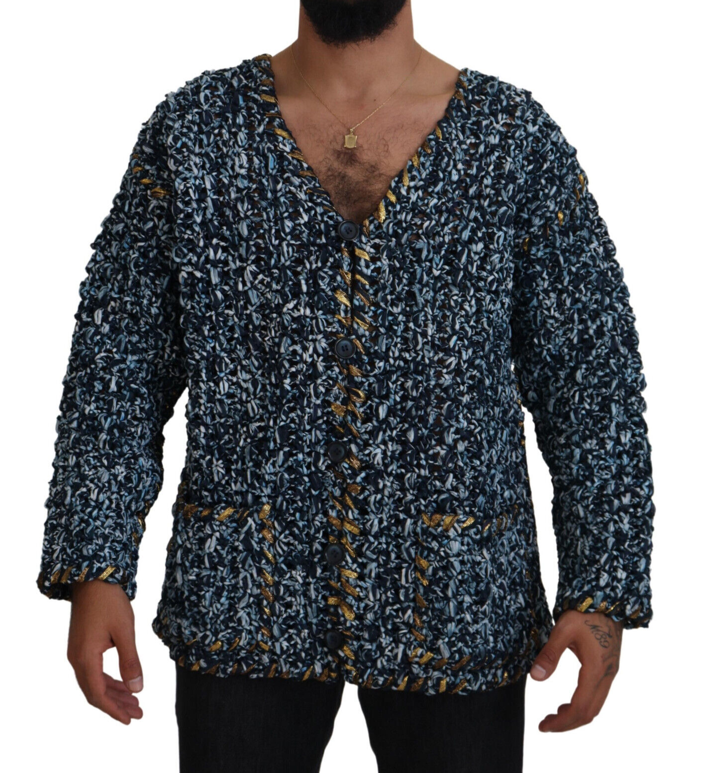 Dolce & Gabbana Pull Fatto A Mano Bleu Bouton Cardigan Hommes S.S