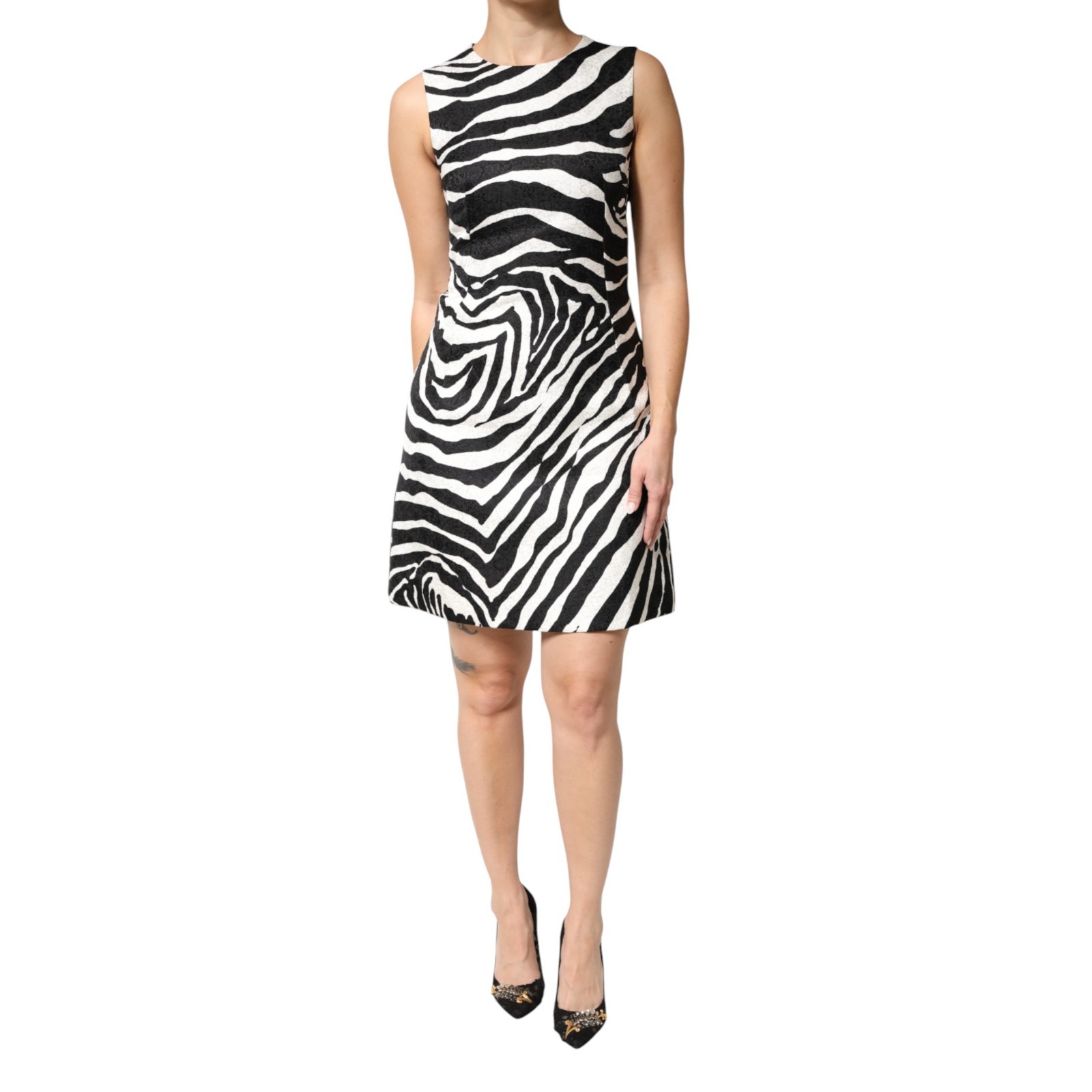 Dolce & Gabbana Robe Noir Blanc Zèbre A-Line Fourreau Mini IT42/ US8/M 2930usd