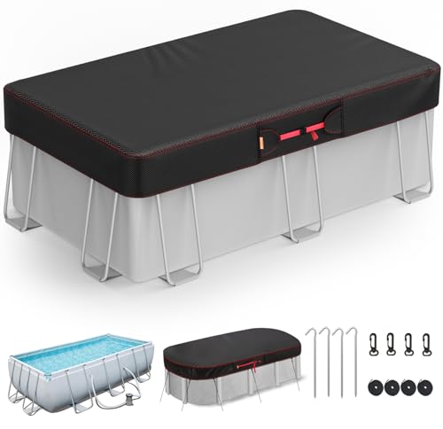 Bâche de Piscine rectangulaire de 221 x 150 cm, avec Cordon de Serrage de 2,1 m, Cadre de Piscine rectangulaire de 17,8 x 10,2 cm, Couverture de Piscine Oxford pour Piscine Hors Sol rectangulaire