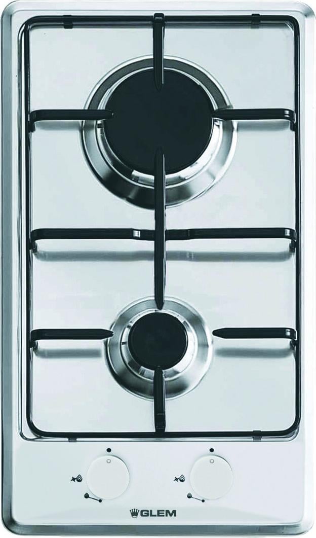 Domino 2 Feux Gaz - All.1 Main - Thermocouple - Cdes Frontales - Grille émaillée -l 29 Cm - Inox - Glem