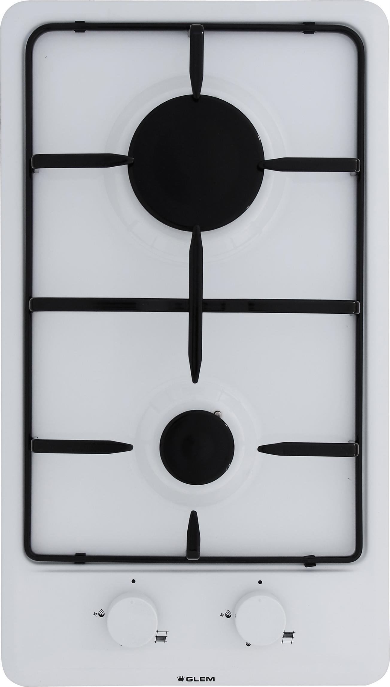 Domino 2 Feux Gaz - All.1 Main - Thermocouple - Cdes Frontales - Grille émaillée -l 29 Cm - Blanc - Glem