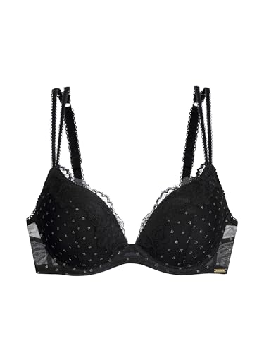 Dorina Origins Soutien-Gorge Push-Up Plongeant – Armatures, Bonnets Moulés, Maille à Pois Scintillants, Dentelle & Bretelles Réglables, Noir