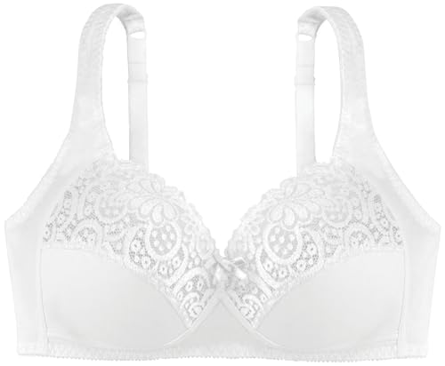 Dorina Soutien-gorge Femme Georgina – Sans Armature, Couverture Totale, Coton avec Binition Dentelle Festonnée, Bande Sous-poitrine de Soutien et Bretelles Réglables, Blanc