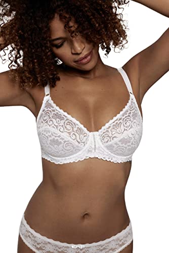 Dorina Soutien-Gorge Femme Angie – À Armatures, Couverture Totale, Bonnets Non Rembourrés avec Finition Dentelle Florale et Côtés en Microfibre Douce, Blanc