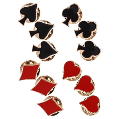 CLISPEED Lot de 12 Broches en Émail Métallique de Cartes à Jouer en Alliage de Zinc Épingles à Revers Unisexes pour Vestes Paquet à Dos Accessoires de Jeux de Cartes