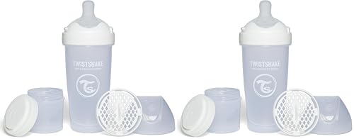 Twistshake 2x Pro Double Biberon Anti-colique avec Récipient à lait en Poudre et Mélangeur - 330 ml | Mamelon en Silicone à Débit Rapide | Sans BPA | Convient aux Bébés à Partir de 4 Mois | Blanc