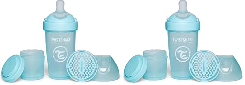Twistshake 2x Pro Double Biberon Anti-Colique avec Récipient à Lait en Poudre - 260 ml | Mamelon en Silicone à Débit Moyen | Biberon de Lait pour Bébé sans BPA | Convient aux Bébés de 2m+ | Bleu