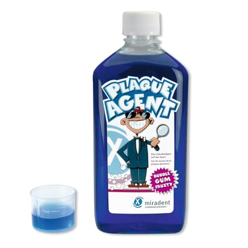miradent Plaque Agent® Bain de bouche 500 ml | Contrôle de la plaque pour enfants | Goût bubble gum agréable | Prêt à l’emploi avec bouchon doseur | Sans érythrosine | Sans alcool