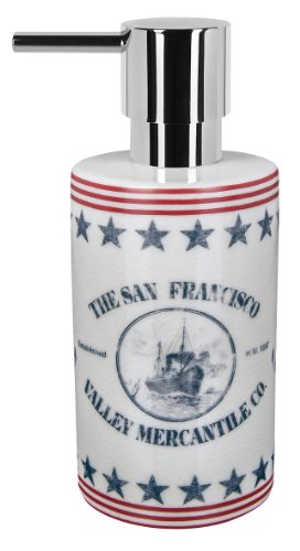 Spirella Distributeur de Savon Liquide, Tube“ Porcelaine Distributeur de Lotion avec doseur en ABS chromé Capacité 300 ML (ØxH): 7 x 16 cm - Watermill Bleu/Rouge