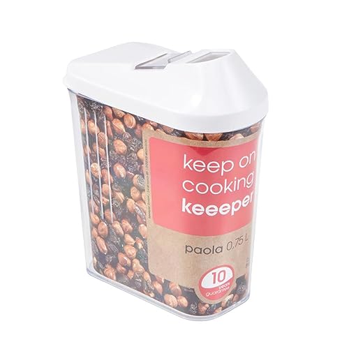 keeeper Boîte Verseuse pour provisions sèches, Couvercle doseur réglable en continu, plastique sans BPA, 750 ml, 10,5 x 5,5 x 17 cm, Paola, Blanc