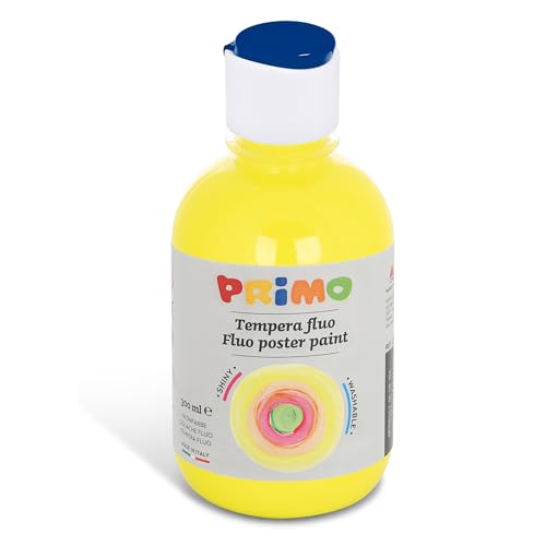 Primo Peinture scolaire pour enfants, couleurs fluo lumineuses, 300 ml avec bouchon doseur (jaune 210)