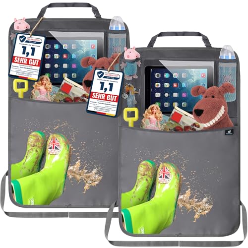 PROTEX | Premium [Lot de 2] Protection de dossier de voiture – Organiseur de siège arrière [Oxford 600D] – Housse de protection imperméable pour siège arrière avec tablette de 12 pouces & iPad