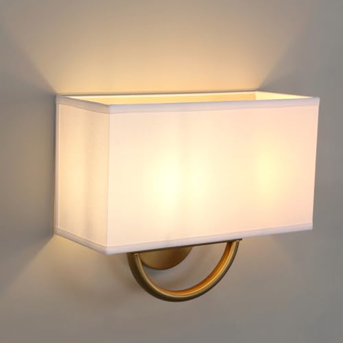 CONERY Applique murale tête simple double laiton applique murale vintage métal abat-jour tissu beige lumière douce santé yeux montage mural luminaire lecture lumières murales pour chambre coucher salo