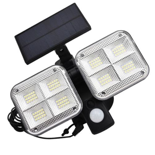 VILLCASE Lampe Solaire Extérieure 120 LED Détecteur de Mouvement Double Tête, Applique Murale Étanche en Abs Noire, Éclairage Jardin et Terrasse, Lumière Solaire pour Sécurité Extérieure