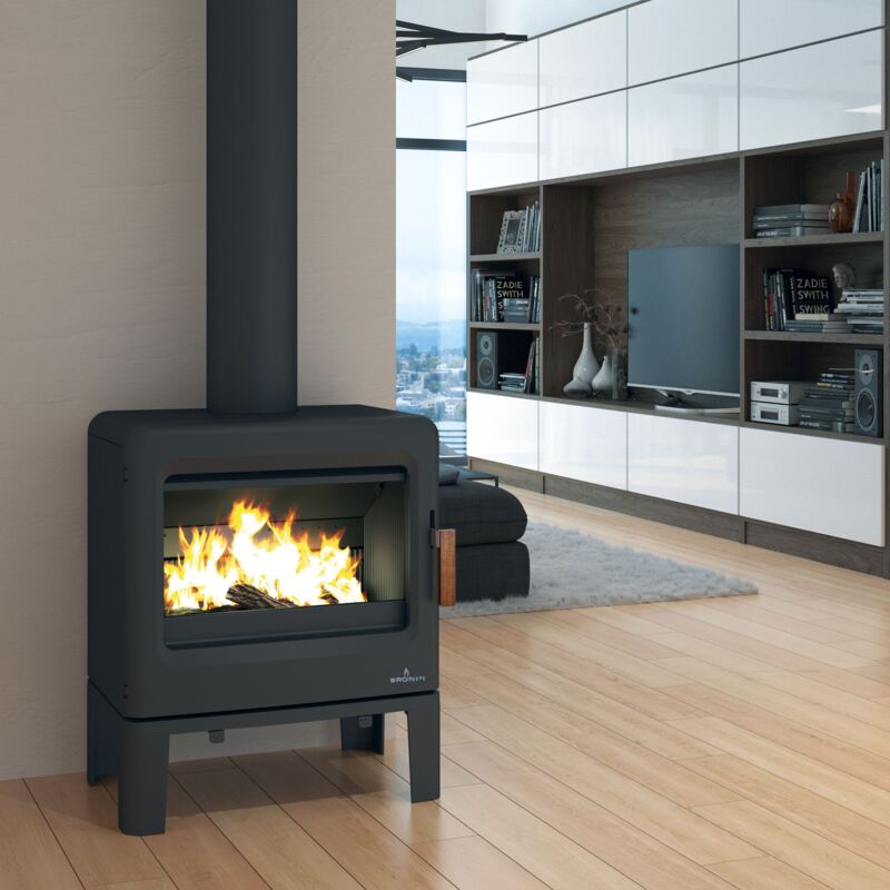 Bronpi – Poêle à bois étanche KAREN 8 kW – Construction en fonte – Rendement 82 % – Volume de chauffe 200 m³ – Système triple combustion