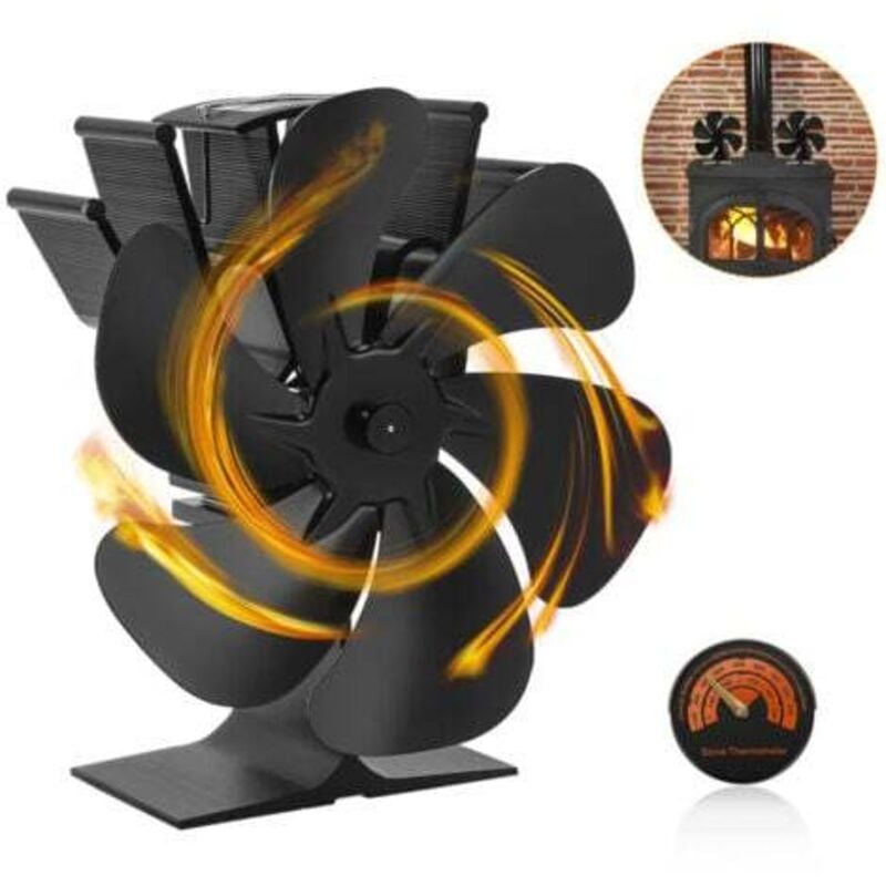 Ventilateur de poêle à chaleur, 6 pales en alliage d'aluminium, cheminée à bois à faible bruit pour la maison, combustion de bûches, noir
