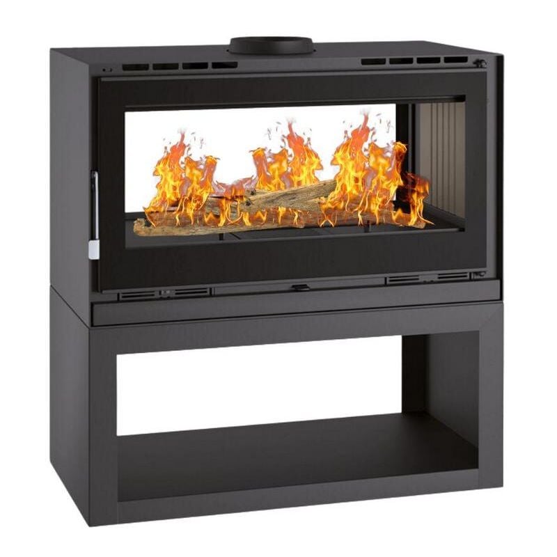 Poêle à bois double face - BRONPI Cairo 90-D Box 13 kW Foyer en FIRETEK - Avec kit ventilation - Avec bûcher