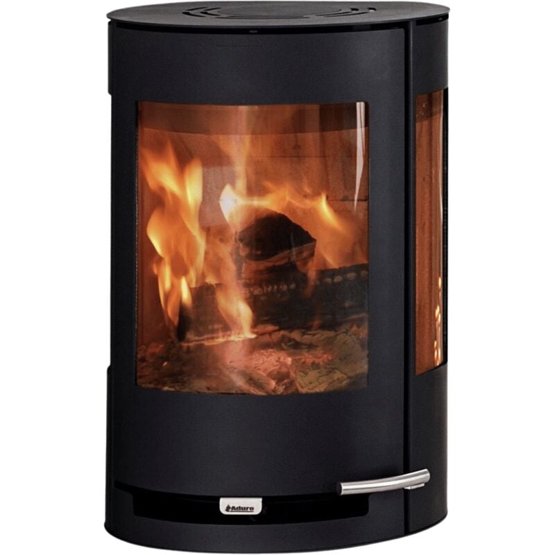 Poêle à bois 8 kW avec vitre bombée – Tiroir de rangement – Installation murale ou d’angle – Système Aduro-tronic pour combustion optimisée