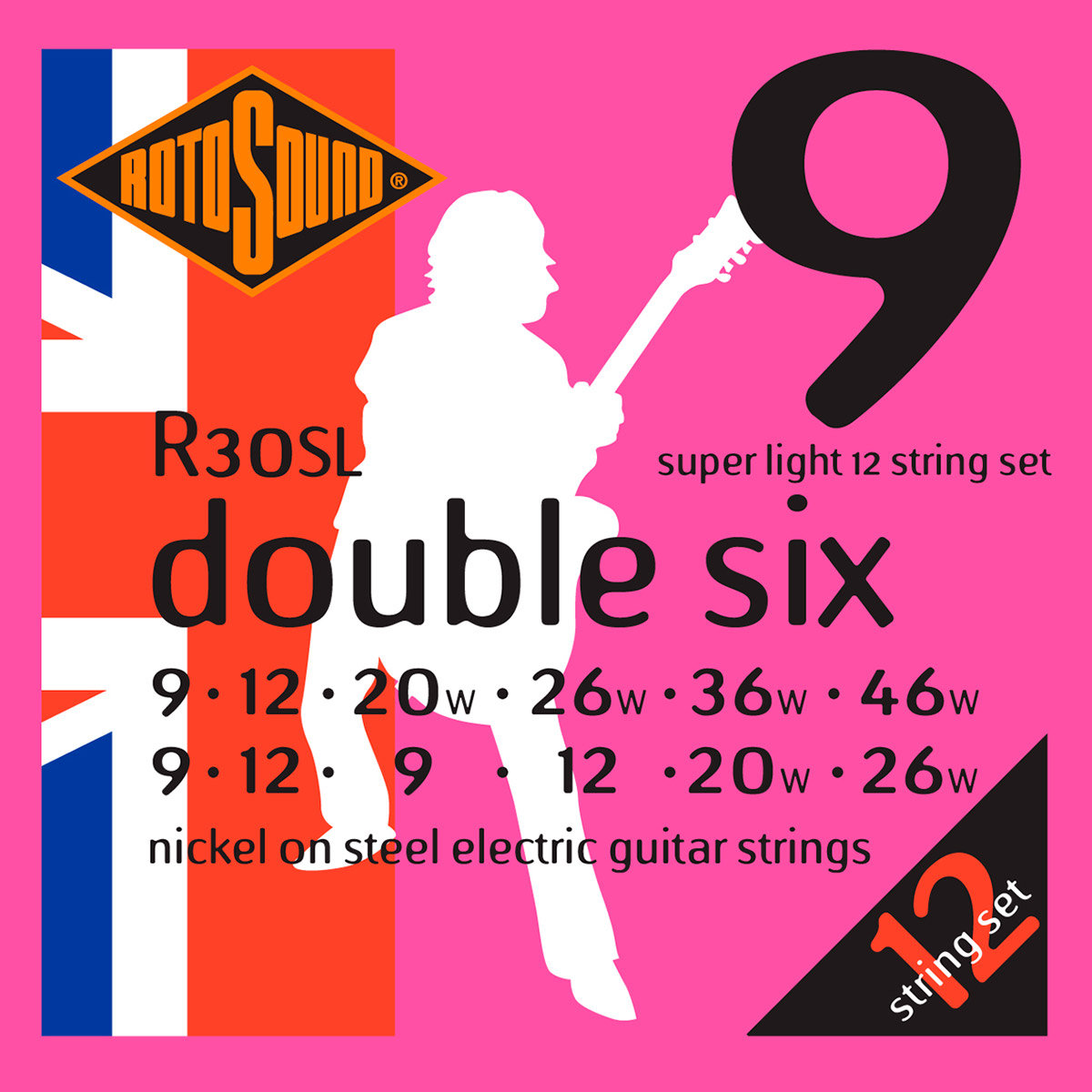 Rotosound Cordes pour Guitare Électrique Roto Nickelée 12-cordes R30SL Double-Six 12-cordes Super-Light 9-46