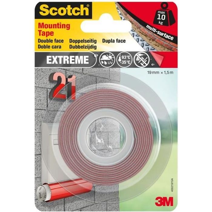 3M Double Ruban face intérieur Scotch Extrême 19 Blanc mm x 5 m kg BLANC13 5M