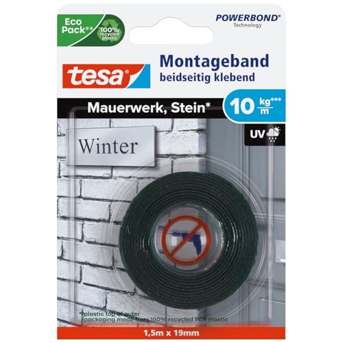 tesa Powerbond Adhésif Double Face de Fixation Pour Brique et Pierre 10 kg/Mètre* – Ruban Adhésif de Fixation Murale pour Intérieur et Extérieur – 5 m x 19 mm