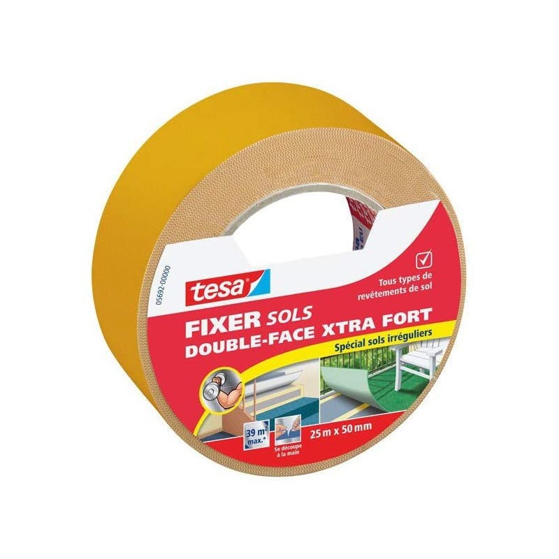Ruban adhésif extra fort double face sols irréguliers Tesa 25m x 50mm
