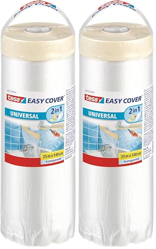 Tesa Easy Cover Film UNIVERSAL - Feuille de recouvrement de peinture 2-en-1 avec papier adhésif double face - 25 m x 140 cm (Lot de 2)