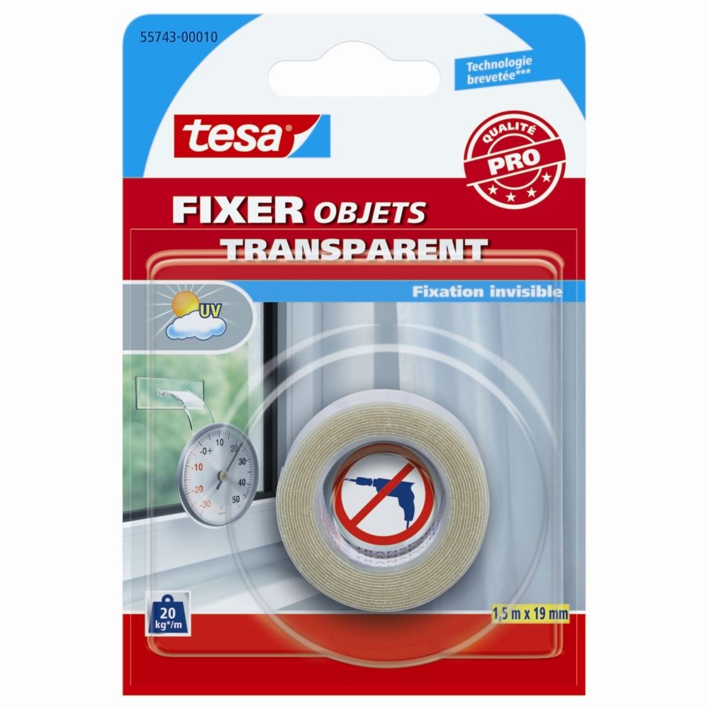 Adhésif double face pour objets Tesa FIXER transparent 1,5m