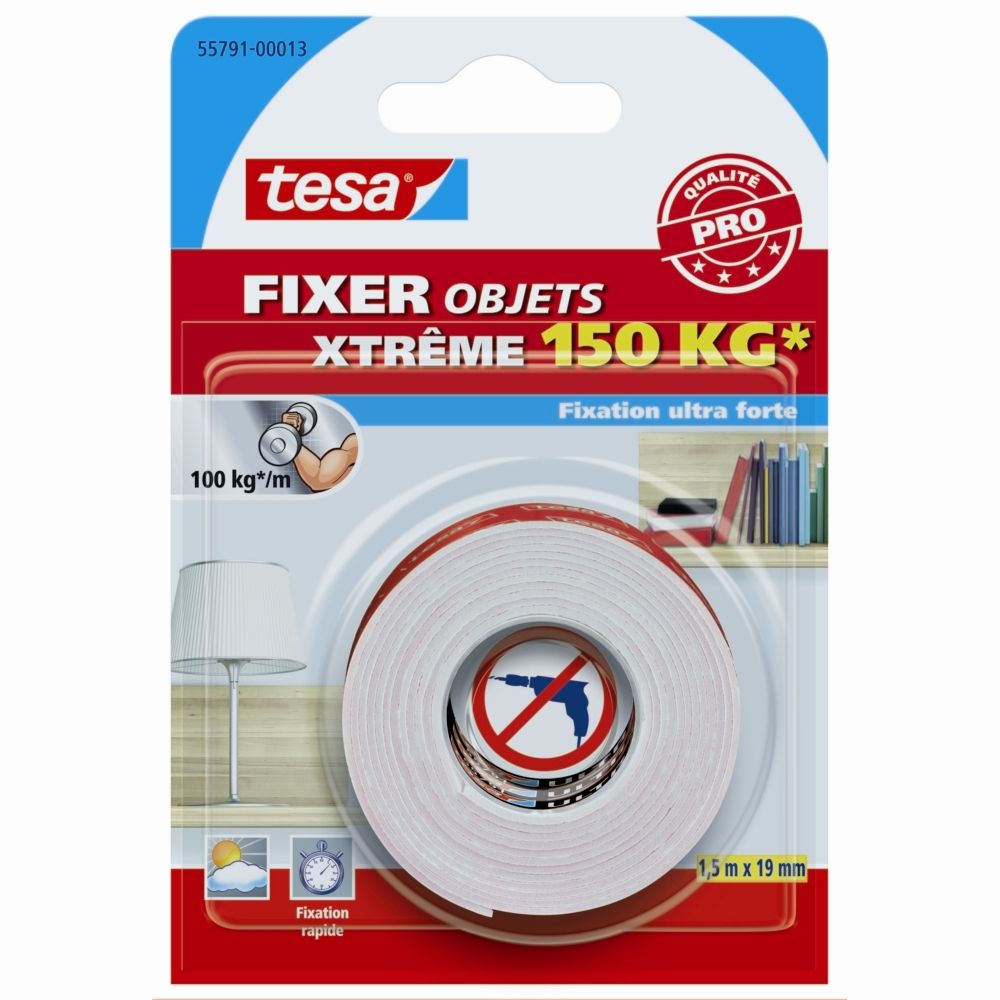 Adhésif double face pour objets Tesa FIXER XTREME 150kg 1,5m