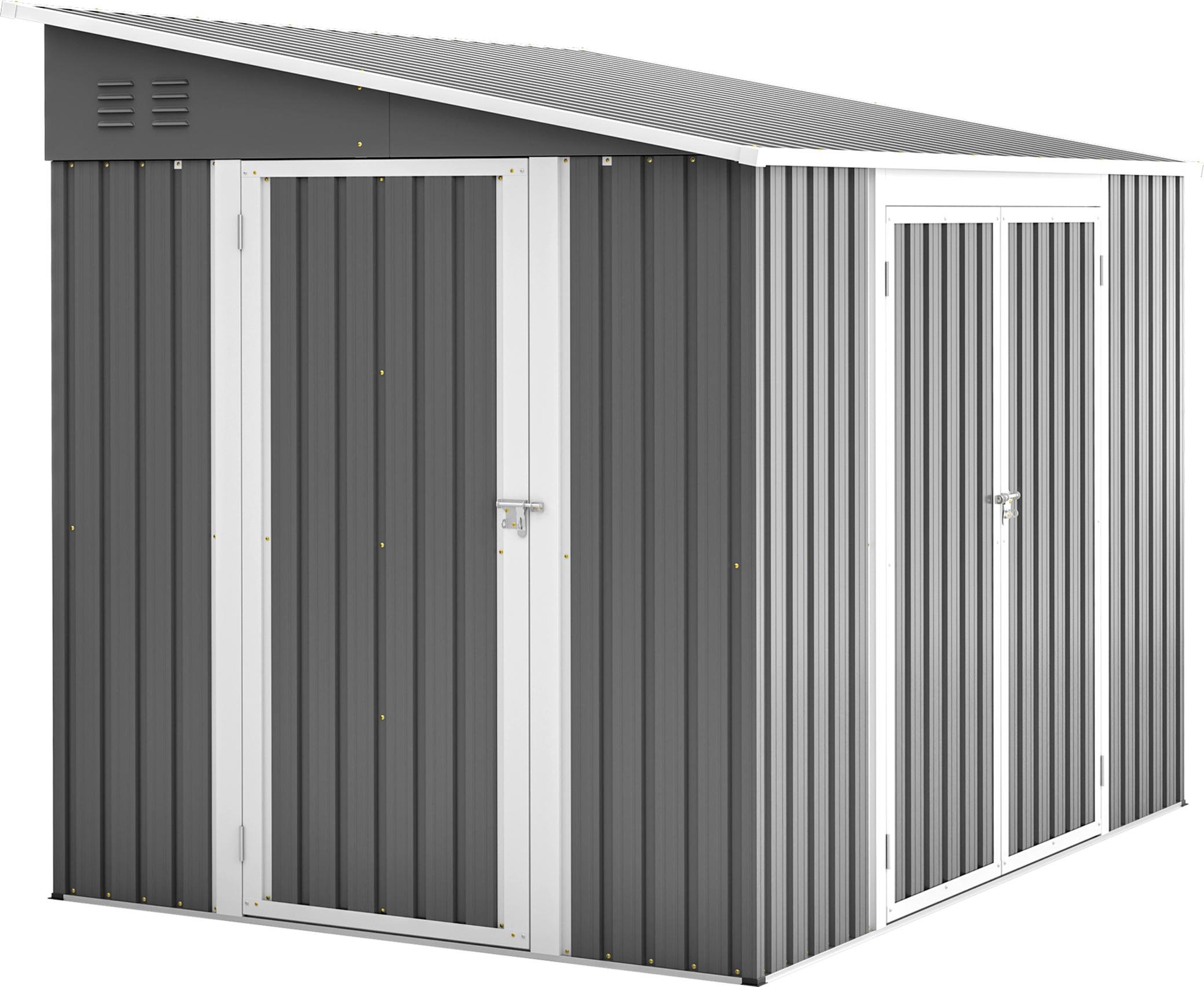RELAX4LIFE Abri de Jardin en Tôle d’Acier Galvanisée avec Fondation et Double Porte Coulissante, Cabane à Outils avec Toit en Appentis et Volets 260X206,5 X 108 CM (Toit Gris Clair)